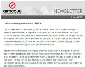 Au sommaire de la newsletter Articque n°50 de juin 2019 : l’édito de Georges-Antoine Strauch, les nouveautés Cartes & Données et Articque Platform, les nouveaux fonds de cartes 2019, un nouvel article sur le géomarketing, nos prochains événements...