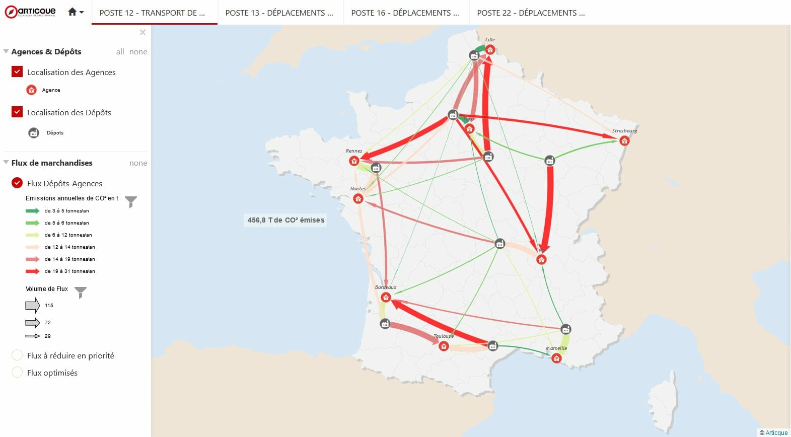 Cartographie des émissions annuelles de CO² par dépôt / Transport de marchandises amont