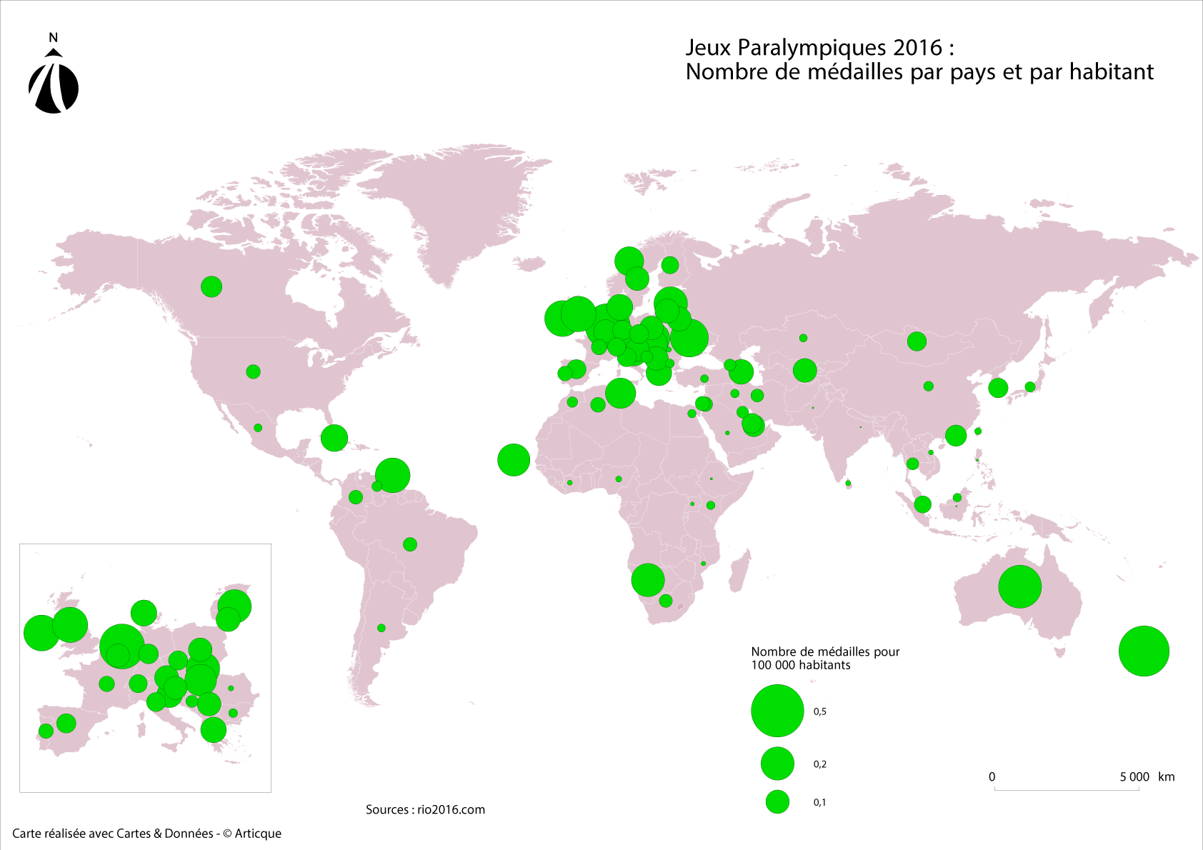 Pour vous offrir un regard différent et réfléchir ensemble sur les Jeux Paralympiques et les Jeux Olympiques, nous vous proposons également une carte comparant les performances des pays dans les 2 compétitions :