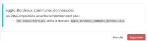 To avoid errors when re-executing a DataComposition, an alert warns you when you try to delete a file linked to this DataComposition.