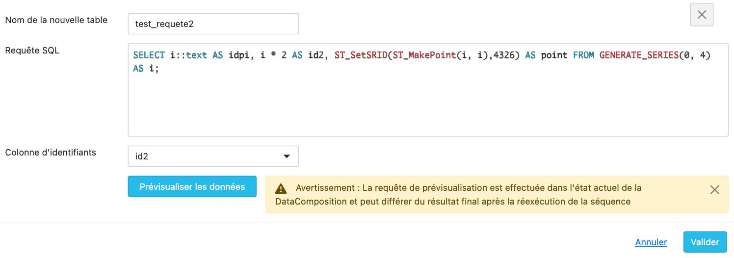 You can now preview your data when you modify your free SQL query. Please note: the preview query is performed in the current state of the DataComposition, so it may differ from the final result after the sequence has been rerun.