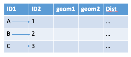 It is now possible to calculate distances from 2 geometry columns in the same table.