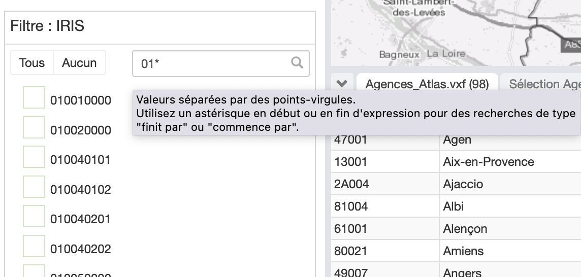 In standard mode, when you create an Atlas with in-depth navigation, it is now possible to select the qualitative filter directly for data from a DataComposer module, in the same way as for data from an Articque Data Market module.