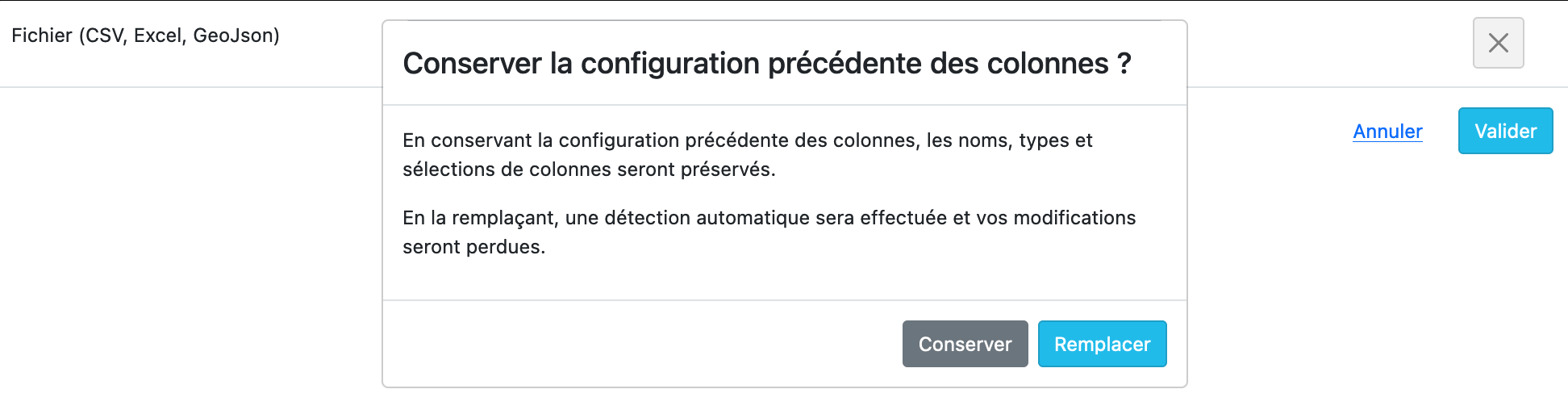 It is now possible to keep the settings when changing the import input file (column name/type, encoding, ID column, etc.).