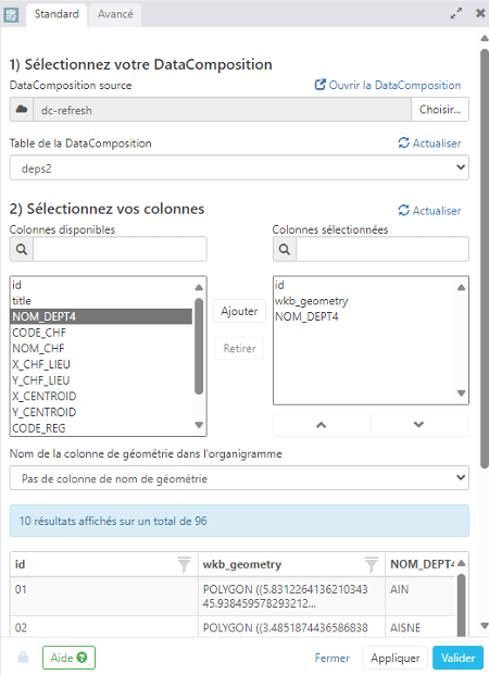 A « Geometries » column is now available from your Articque DataMarket import, enabling you to retrieve related spatial data.