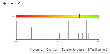 Plus l’indice TAI est proche de 1, mieux la discrétisation retranscrit fidèlement la dispersion des données au sein de ses classes. On considère généralement que la discrétisation est « utilisable » (ses classes retranscrivent de manière suffisamment fidèle la dispersion réelle des valeurs) lorsque le TAI devient supérieur ou égal à 0,65 / 0,7.