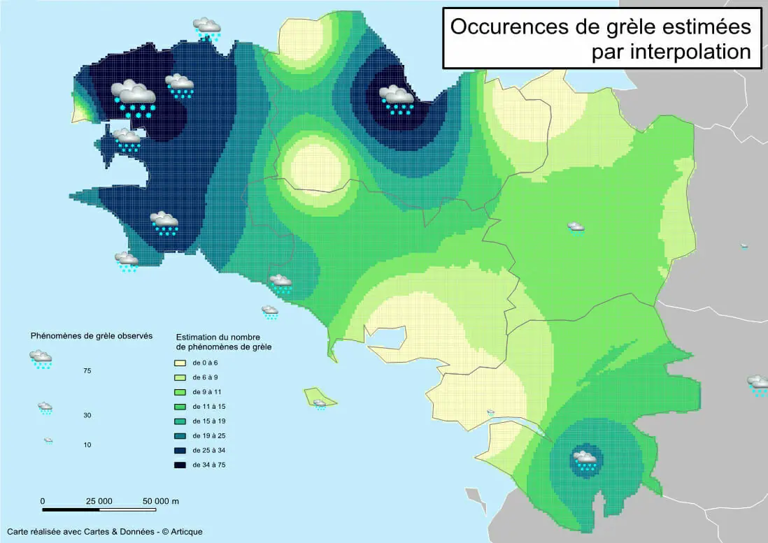 Le résultat de ce traitement prend la forme d’une nouvelle valeur calculée pour chaque territoire à partir de celle des points connus qui l’influencent.